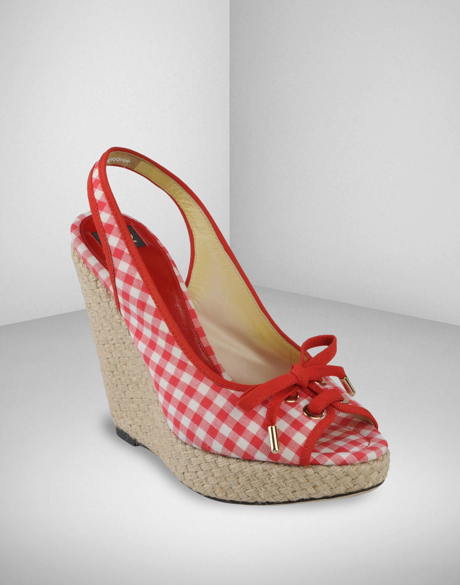 Estos zapatos de la linea dolce & gabanna los puedes utilizar para salir a pasear a un picnic, etc. Son muy cómodos, tienen un color fuerte y llamativo como es el rojo combinado con blanco, tienen diseño de lazo con un pasador que las ase ver muy juveniles.