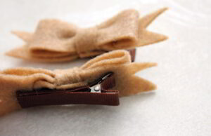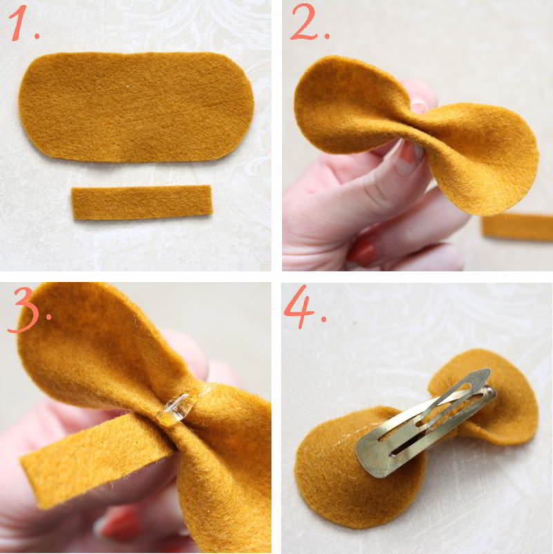 - Con un poco de pegamento caliente fija la tirita de fieltro, dando lugar a una bonita moña.