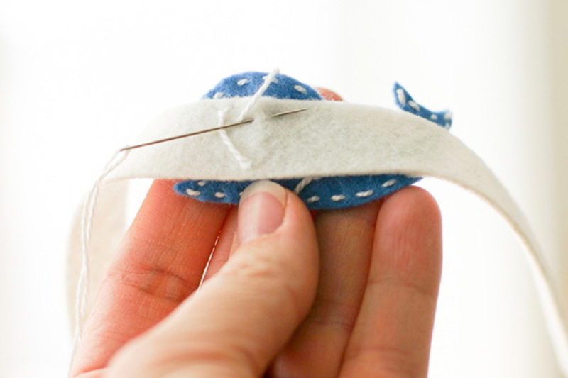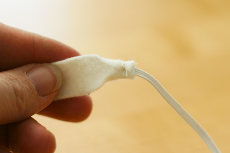 - Cose el elástico al fieltro. Repite en el otro lado.