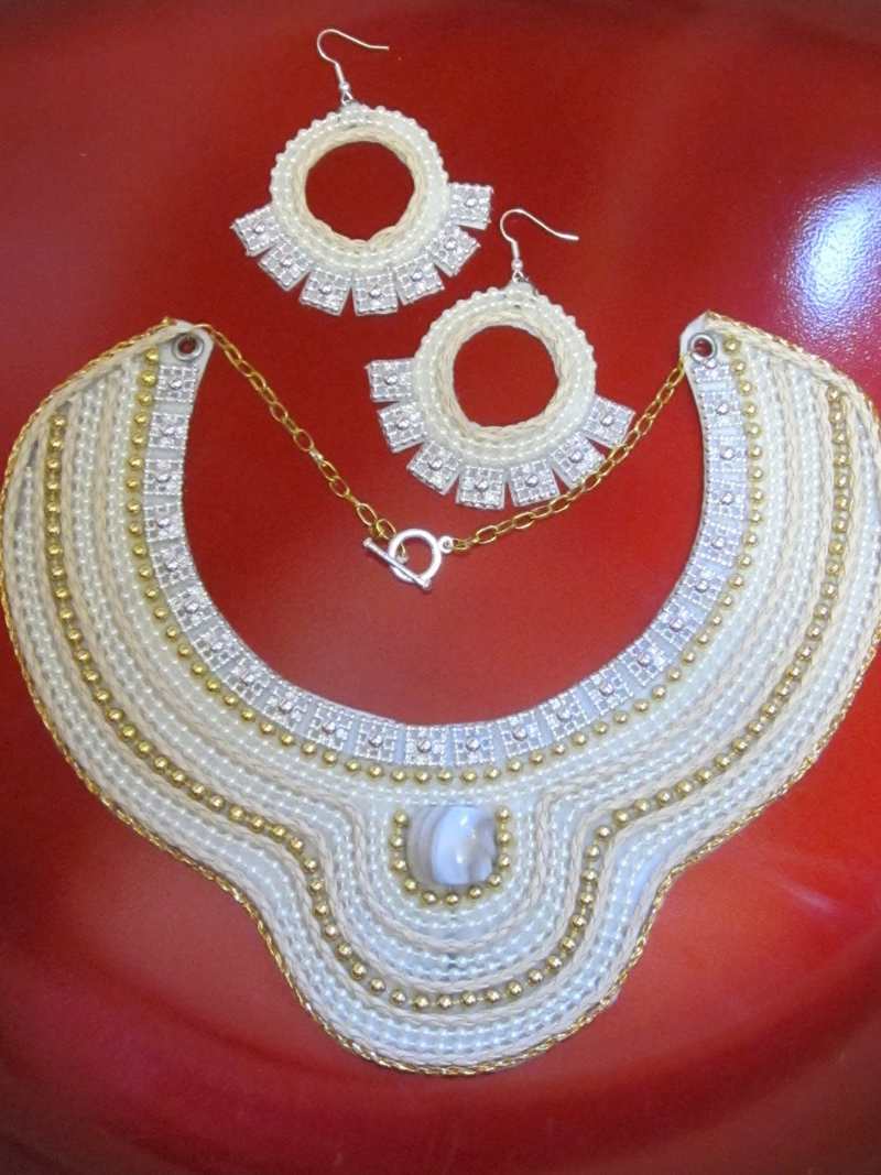 Fíjate en este espectacular collar babero en blanco y lo bien que complementaría con una camiseta negra, roja, azu etc.....