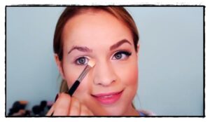 - Utilizaremos la sombra color beige (con brillo), para aplicarla en el lagrimar y párpado móvil, así agrandará la mirada.
